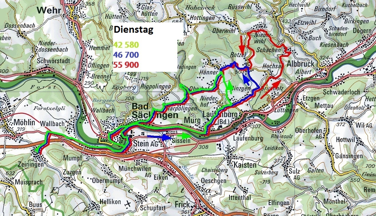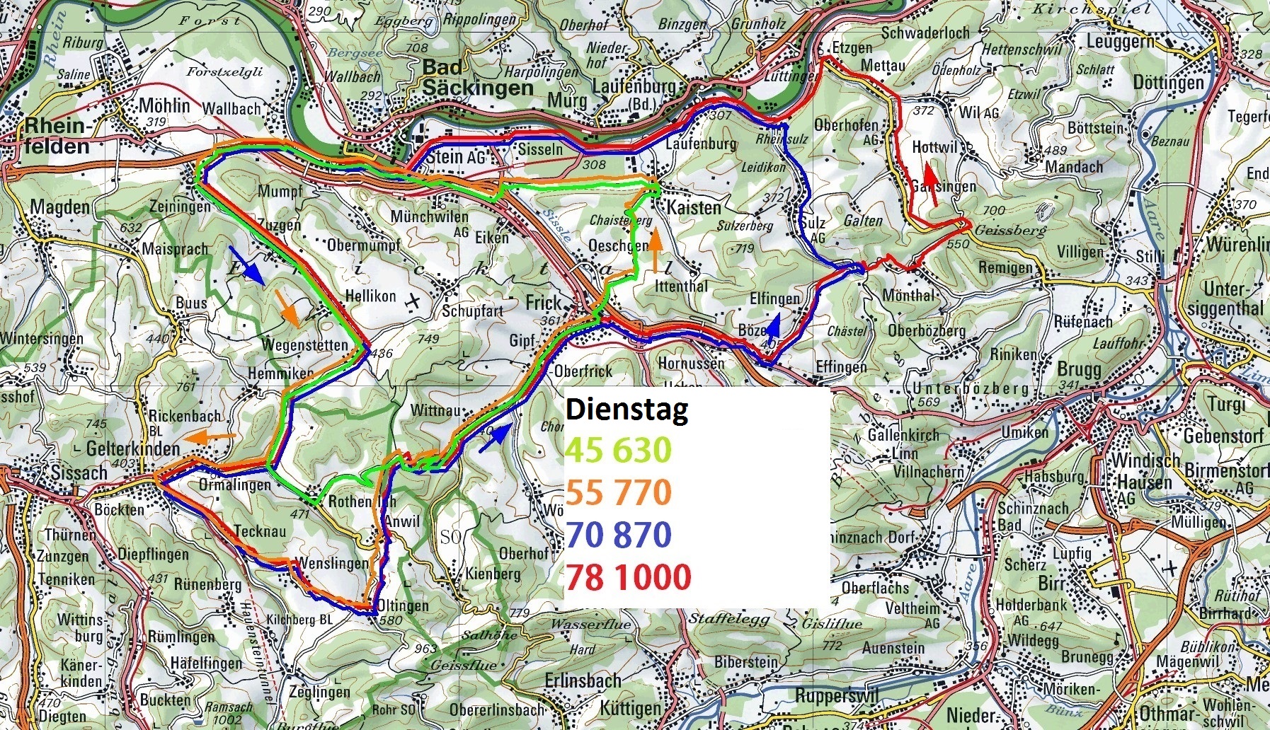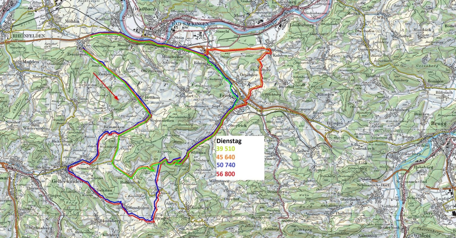 | Schupfart - Kaisten | Gruppe 4 | 57 km | 750 m | 💾 |