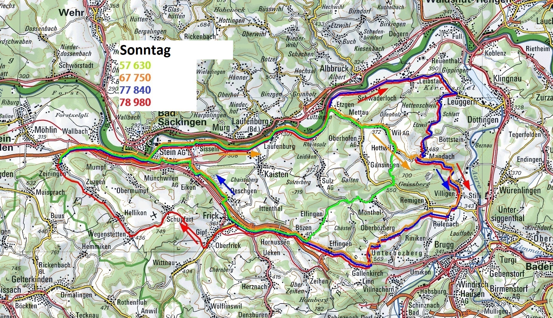 | Schupfart - Kaisten | Gruppe 4 | 57 km | 750 m | 💾 |
